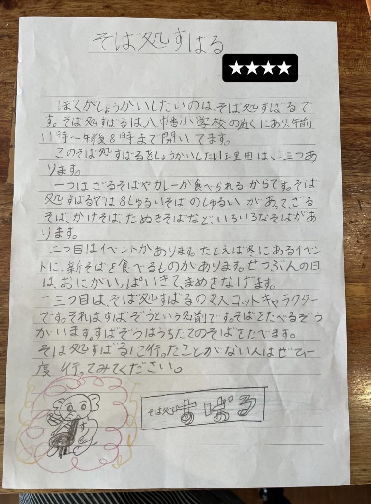 長男からそば処すばるの紹介のお手紙をもらいました😊